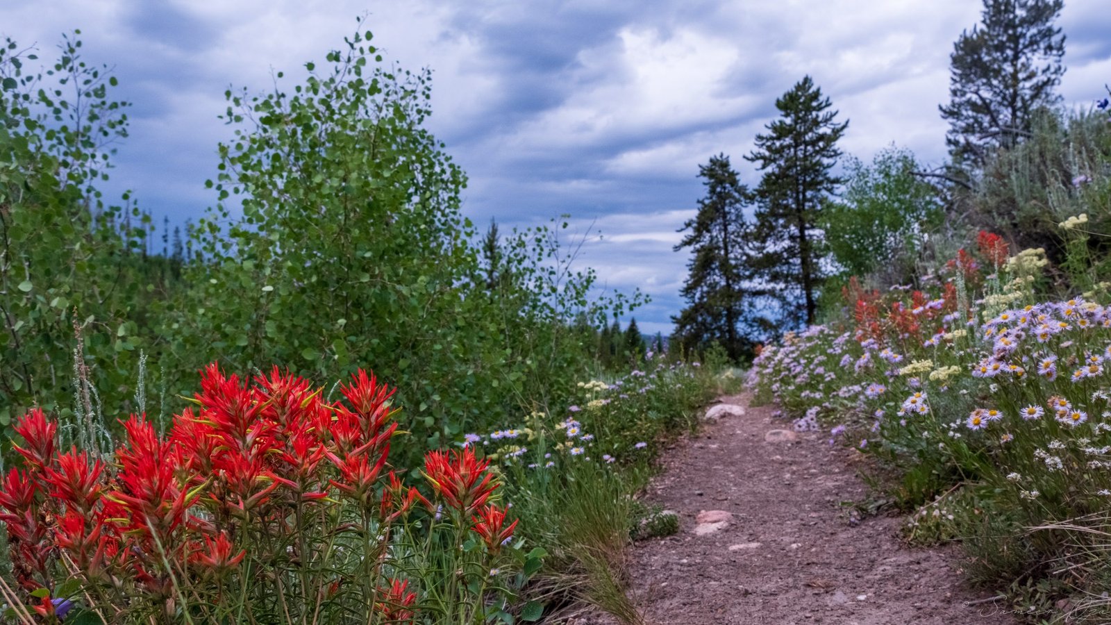 We took an impromptu trip to State Forest State Park near Walden. It is the largest state park in Colorado at more than 70,000 acres, it is remote and not very popular – all the reasons to go there for 4th of July. It is home to 600 moose though we were not lucky enough to see one. We were lucky to see tons of wildflowers, to have cool & cloudy weather and to hike in the backcountry. The first day we did a 11 mile hike and the events reiterated how strong Peggy is – she twisted her ankle at 6 miles and finished the hike regardless. I also found out how strongly built the Motorola smartphones are – Peggy dropped hers in the campfire, we got it out after about 15 seconds and it worked!!