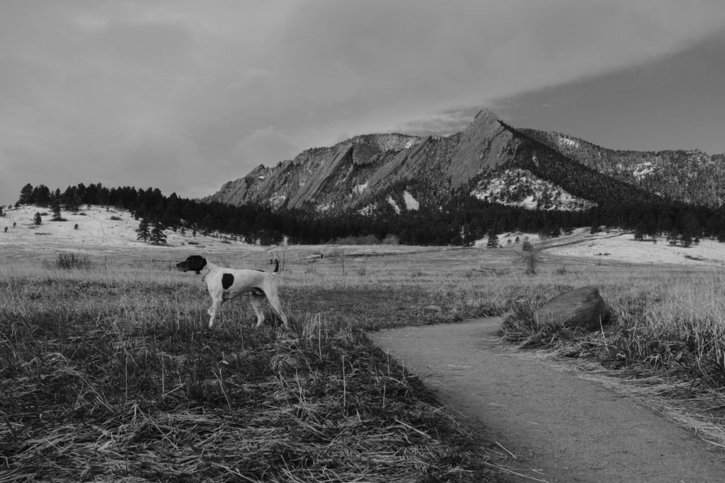 Springtime is a great time to walk in Boulder.The weather is unpredictable with heavy wet snow one day, bright summer sunshine the next day. Flowers are blooming, or trying to figure out whether it is the right time to bloom with all the snow. The moisture in the air carries the smells and makes it TOO MUCH FUN for the dog!