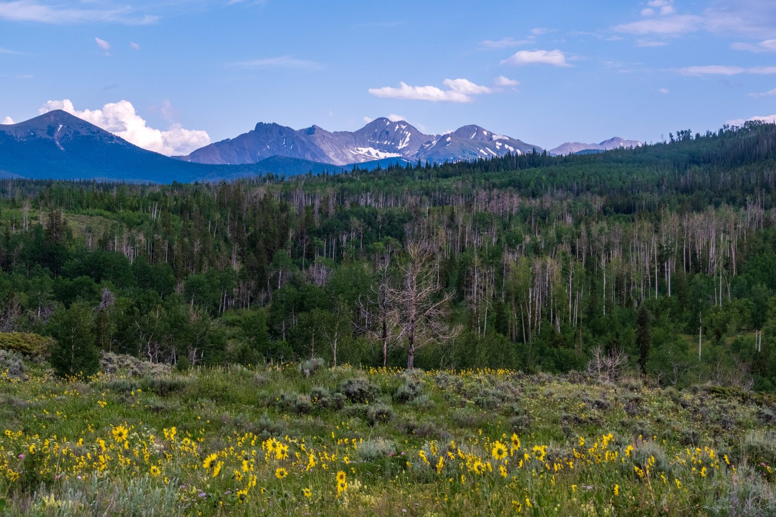 We took an impromptu trip to State Forest State Park near Walden. It is the largest state park in Colorado at more than 70,000 acres, it is remote and not very popular – all the reasons to go there for 4th of July. It is home to 600 moose though we were not lucky enough to see one. We were lucky to see tons of wildflowers, to have cool & cloudy weather and to hike in the backcountry. The first day we did a 11 mile hike and the events reiterated how strong Peggy is – she twisted her ankle at 6 miles and finished the hike regardless. I also found out how strongly built the Motorola smartphones are – Peggy dropped hers in the campfire, we got it out after about 15 seconds and it worked!!